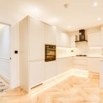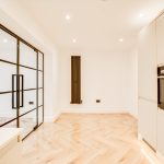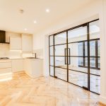 Throughout the ground floor, luxury LVT flooring, feature panelling and ambient LED lighting flow seamlessly, enhanced by sleek crystal black steel doors. To the rear, a stunning high-spec kitchen boasts matte cream cabinetry, integrated appliances including Bosch oven, hob and extractor, and modern sockets with USB and USB-C ports. This space opens through steel-framed doors into a bright conservatory-style extension, crowned by a blue glass roof lantern. Bi-fold doors connect effortlessly to the garden, creating a superb indoor-outdoor living area.