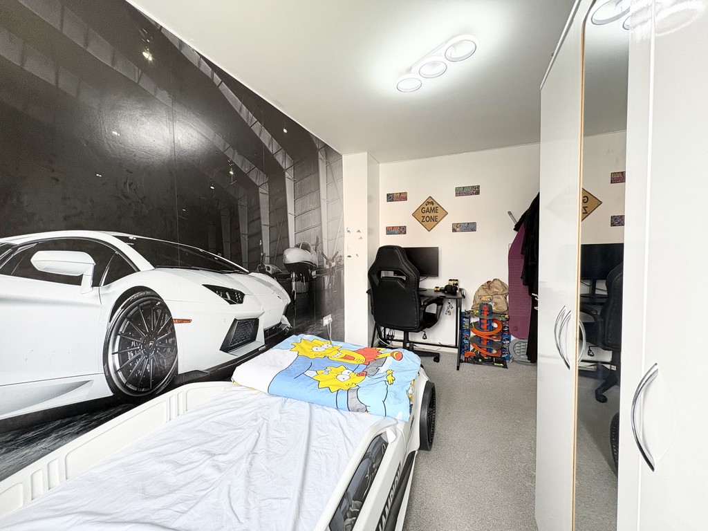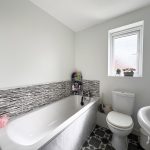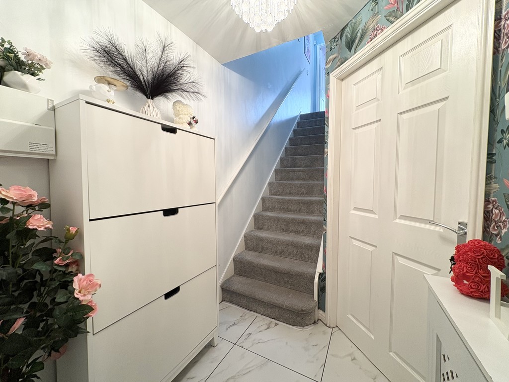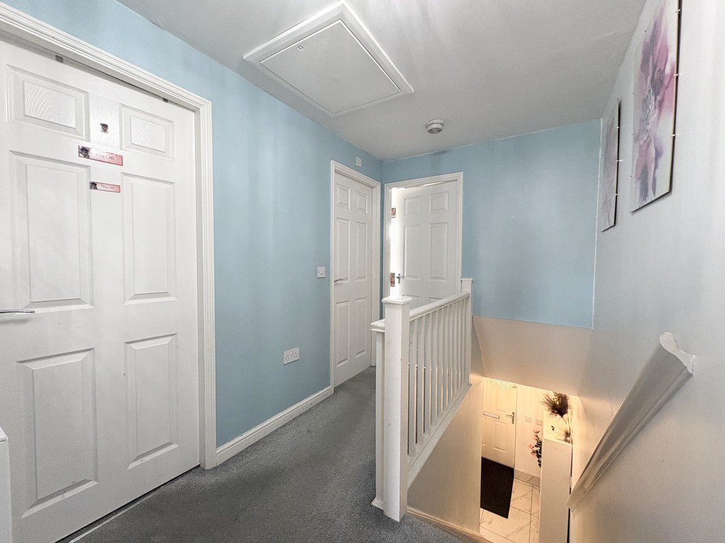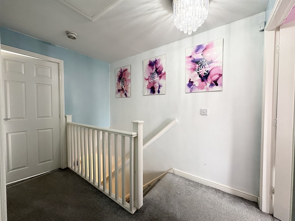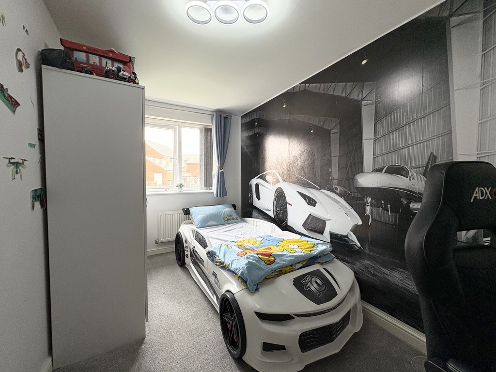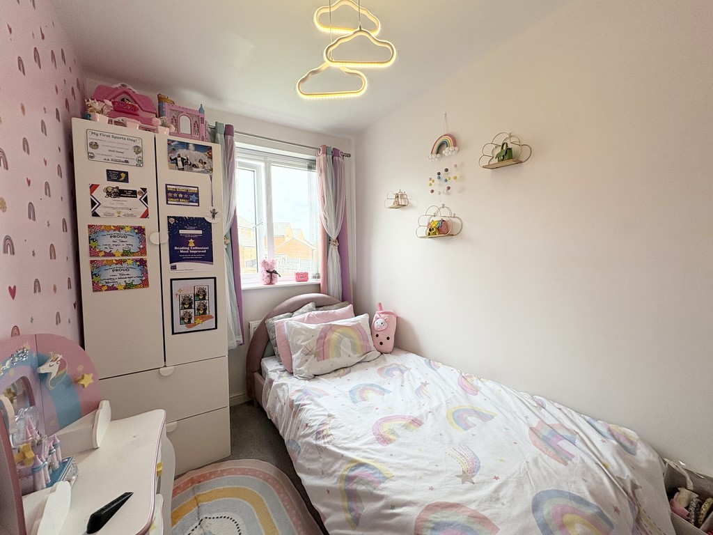 To the first floor, the property continues to impress with three well-proportioned bedrooms, all accessed from a central landing. The principal bedroom is particularly spacious, offering ample room for furniture and storage while maintaining a bright and airy feel. Bedrooms two and three are also of generous size, making them ideal for children, guests, or even a dedicated home workspace if needed. The family bathroom is well-appointed with a modern three-piece suite, providing a clean and comfortable space designed for everyday convenience.