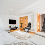 - Second large reception room with skylights and wooden shutter blinds, filled with natural light