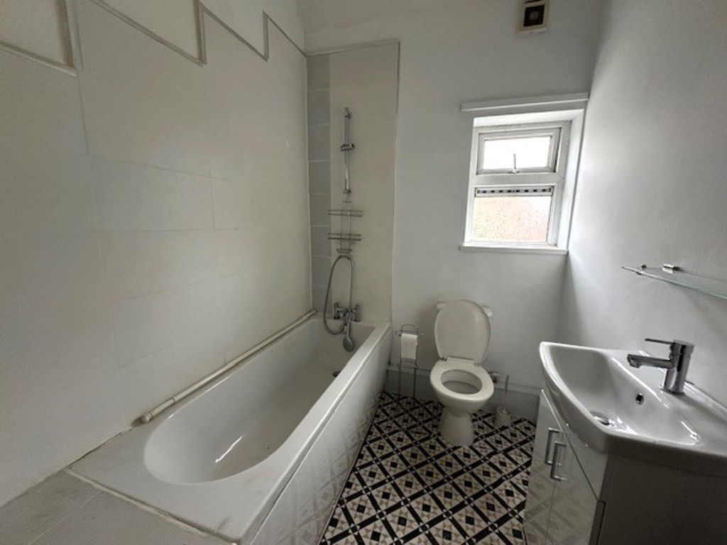 Upstairs, the property offers a landing area leading to two generously sized double bedrooms, both bright and unfurnished, ready to be made your own. The bathroom features a three-piece suite with bath, wash basin, and WC. Additional benefits include double-glazed windows and a gas combi central heating system for energy efficiency and comfort all year round.