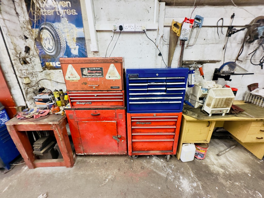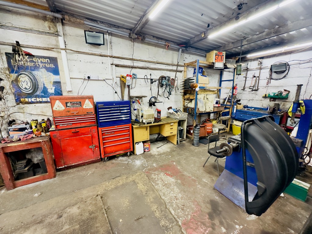 Internally, the workshop space is impressive in scale and functionality. The garage is fully furnished and operational, allowing a new tenant to commence trading immediately with minimal additional setup. The premises includes a professionally installed vehicle inspection pit ramp and a vehicle lift system, enabling efficient servicing and repairs. There is tyre fitting and repair machinery in place, alongside workbenches and organised storage units throughout. A comprehensive range of mechanic tools is included, featuring recognised Snap-on branded equipment, offering significant added value and reducing initial capital expenditure for an incoming tenant. The layout and depth of the workshop allow multiple vehicles to be worked on simultaneously, making it highly suitable for high-volume operations.