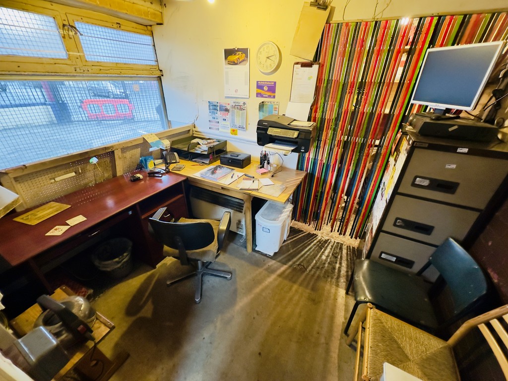 In addition to the main workshop area, the property also includes a separate office space, ideal for customer reception, administrative tasks, or business management. There is an additional storage area suitable for parts or equipment, as well as on-site toilet facilities for staff convenience, ensuring the premises is fully equipped for day-to-day business operations.