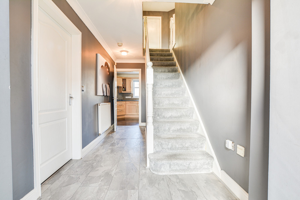 The welcoming entrance hall sets the tone for the home, providing access to the integrated garage, which has been thoughtfully partially converted to create an expansive Office/Gym, enhancing everyday living.