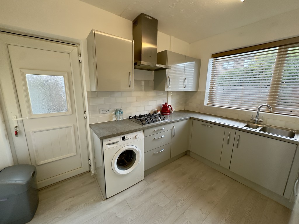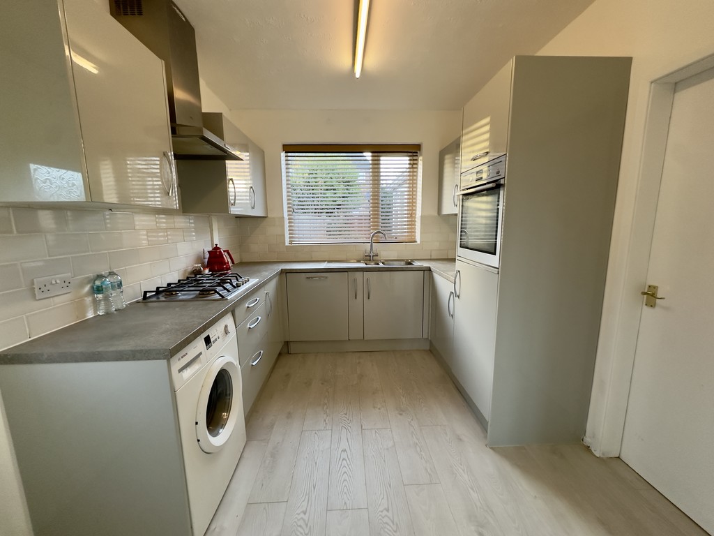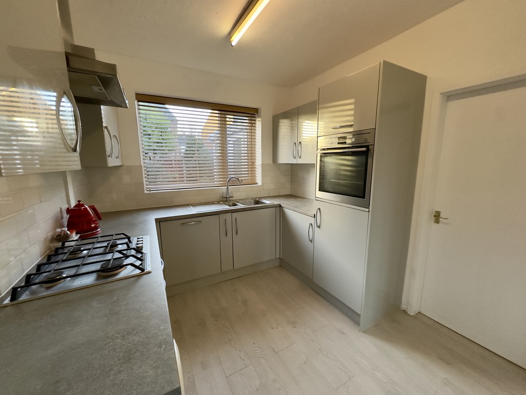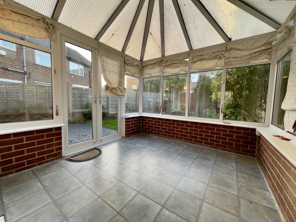 The home is offered unfurnished and features a spacious two-car driveway along with a detached garage. Upon entering, you are welcomed by a bright hallway that leads into a generous lounge flowing through to the dining area, which then opens into a light-filled conservatory overlooking the rear garden. The fitted kitchen includes an integrated dishwasher, washing machine, gas hob and oven, with direct access to the garden.