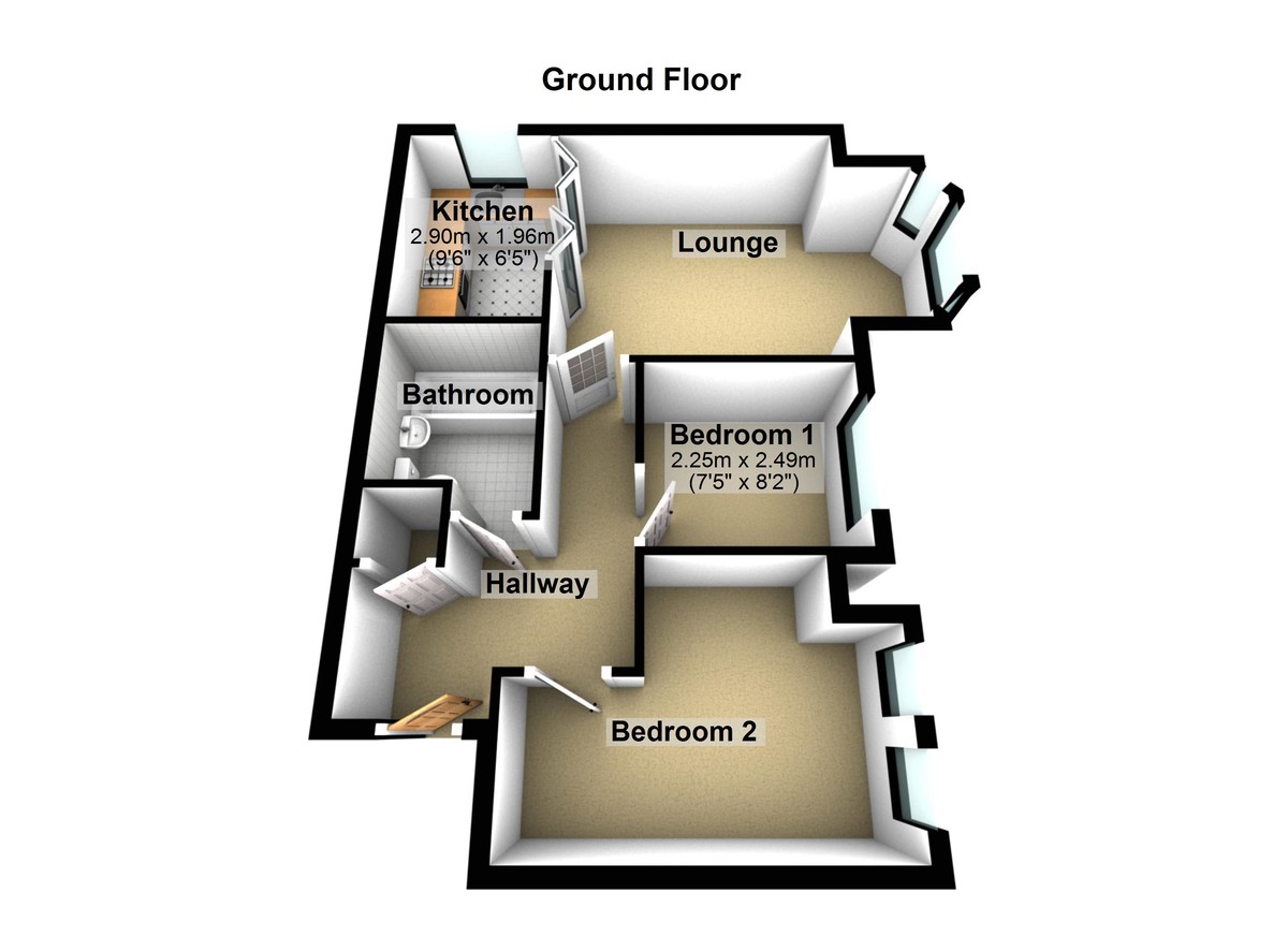 BEDROOM 2 8' 2" x 7' 0" (2.49m x 2.13m)
